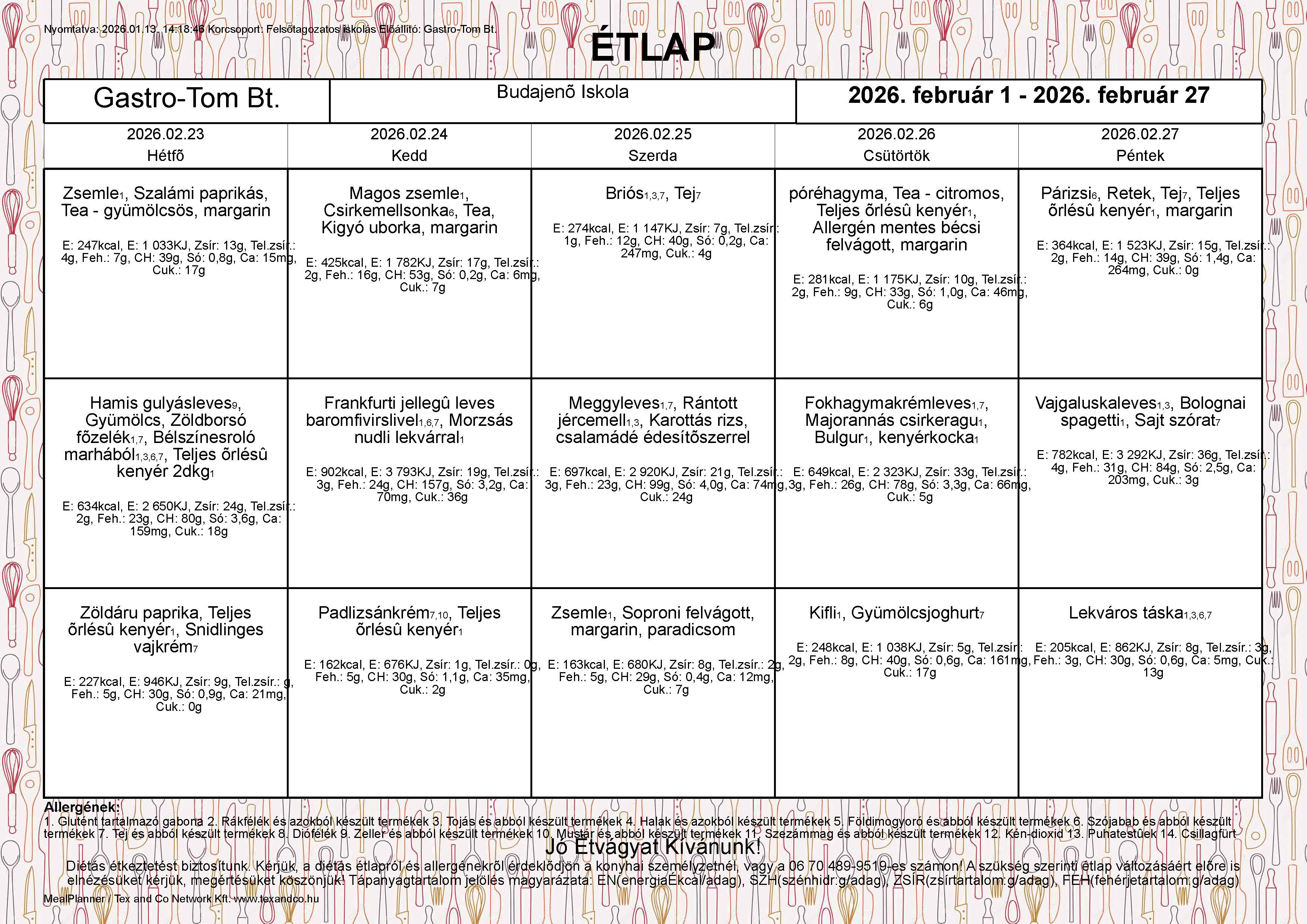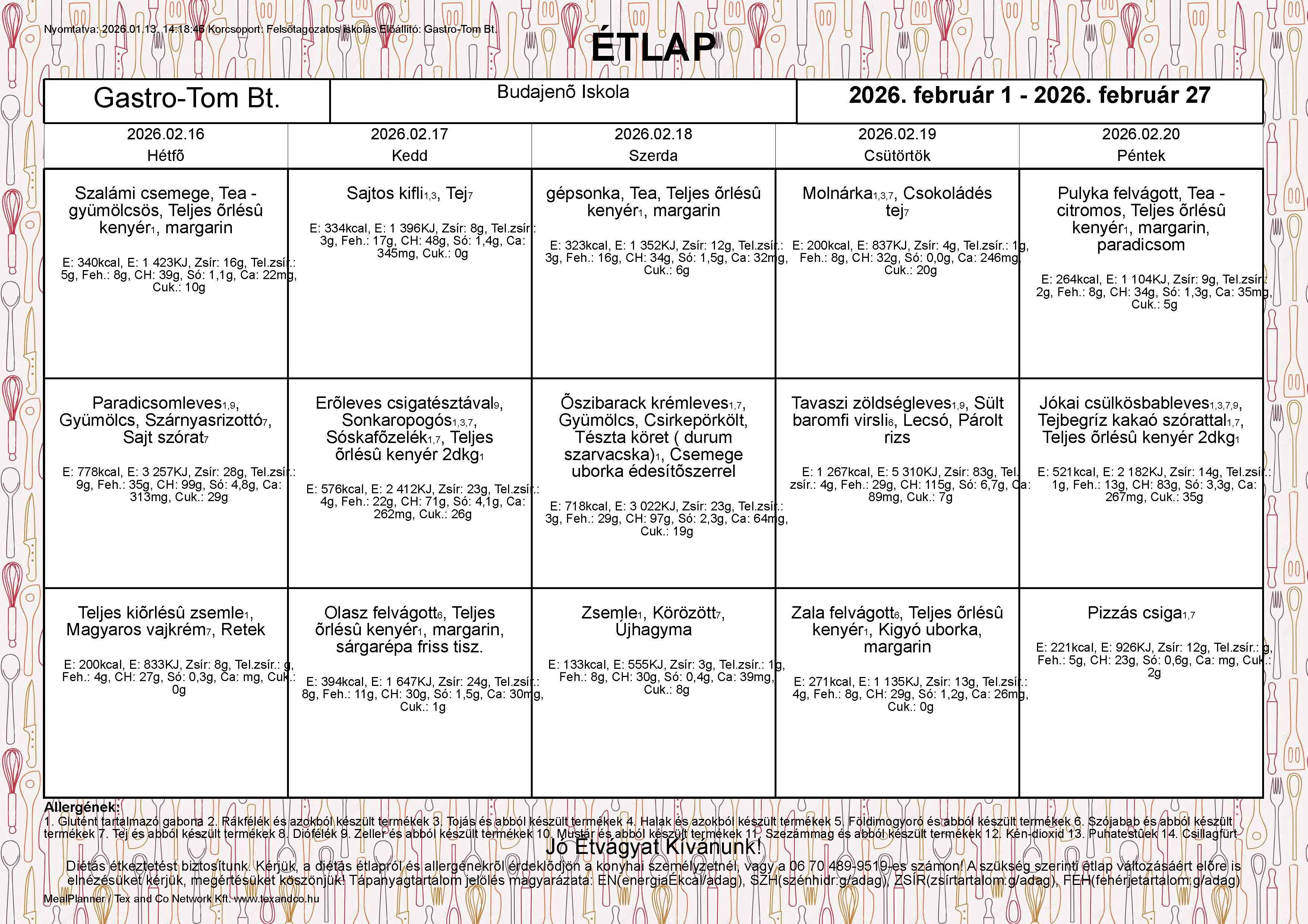 | ebéd 65% | 218,-Ft | 276,-Ft | 262,-Ft | 333,-Ft |