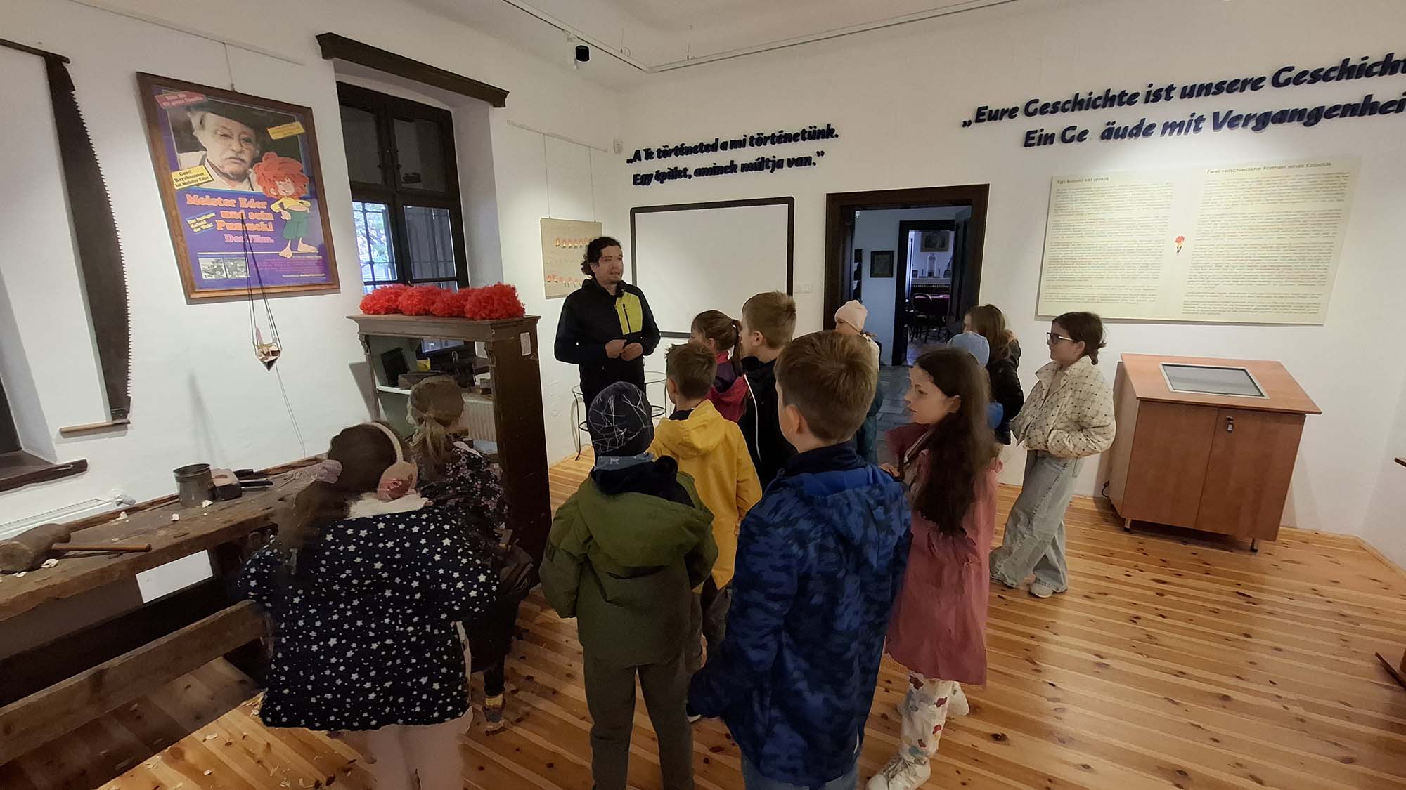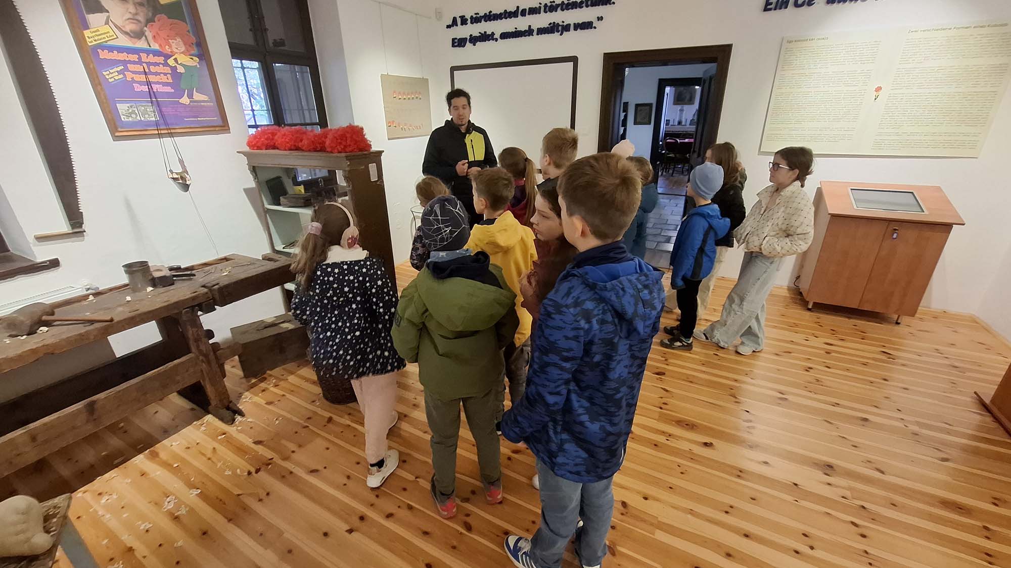 A tábor utolsó napján a tatai Német Nemzetiségi Múzeum mindenki számára feledhetetlen élményt nyújtott. A gyerekek nemcsak megcsodálhatták a gazdag gyűjteményt, hanem egy külön raktárban számos régi használati tárgyat kézbe is vehettek. Fantasztikus volt megtapasztalni, mennyi minden tartozott egykor a mindennapi élethez – valóban tanulságos és inspiráló program volt. Ebéd után a diákok városnéző kisvonattal fedezték fel Tatát, ezzel zárva a programokban és élményekben gazdag hetet.
