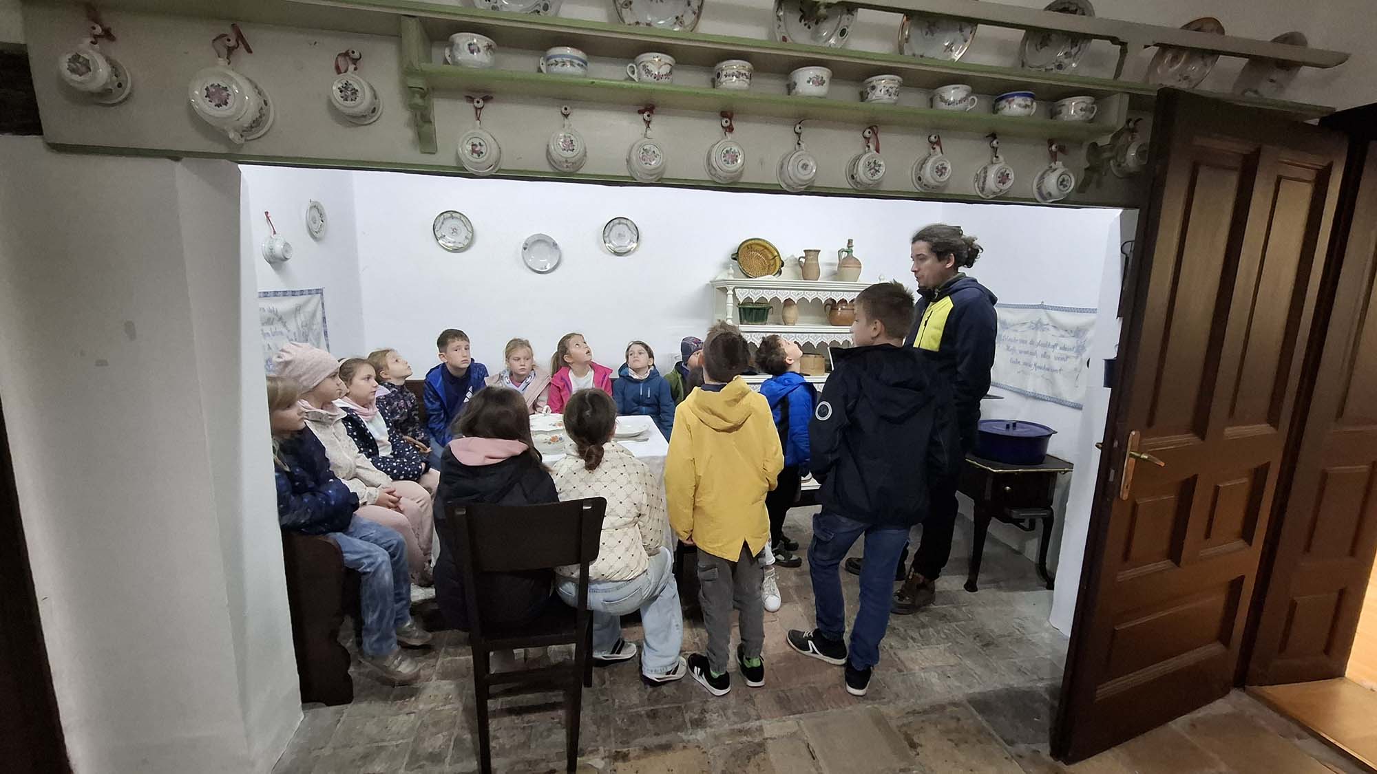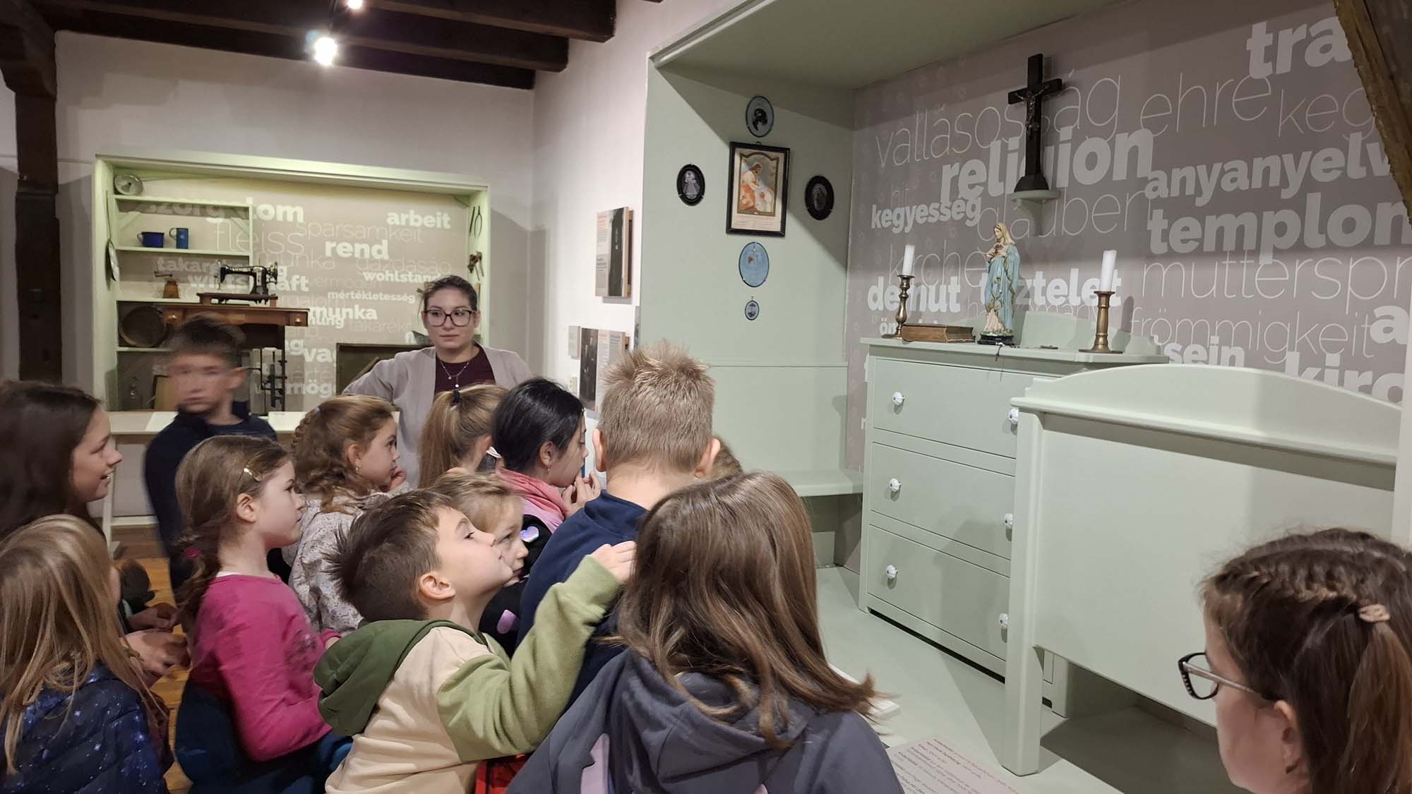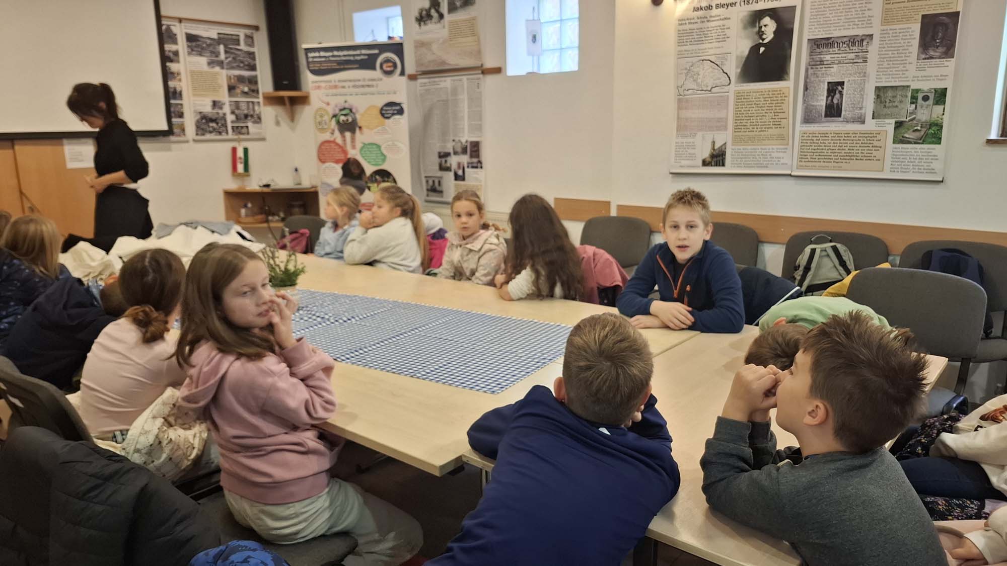 A tábor utolsó napján a tatai Német Nemzetiségi Múzeum mindenki számára feledhetetlen élményt nyújtott. A gyerekek nemcsak megcsodálhatták a gazdag gyűjteményt, hanem egy külön raktárban számos régi használati tárgyat kézbe is vehettek. Fantasztikus volt megtapasztalni, mennyi minden tartozott egykor a mindennapi élethez – valóban tanulságos és inspiráló program volt. Ebéd után a diákok városnéző kisvonattal fedezték fel Tatát, ezzel zárva a programokban és élményekben gazdag hetet.
