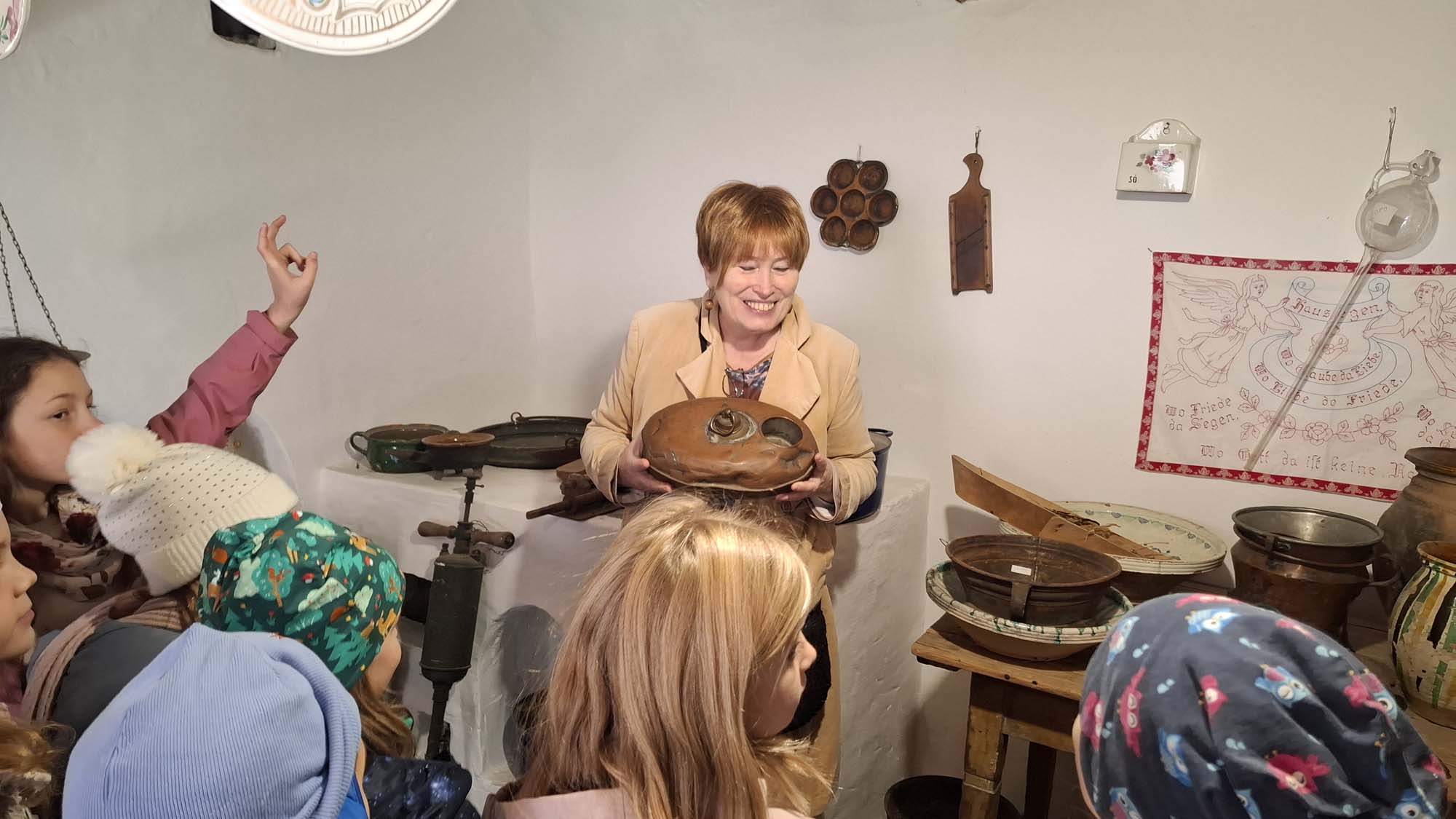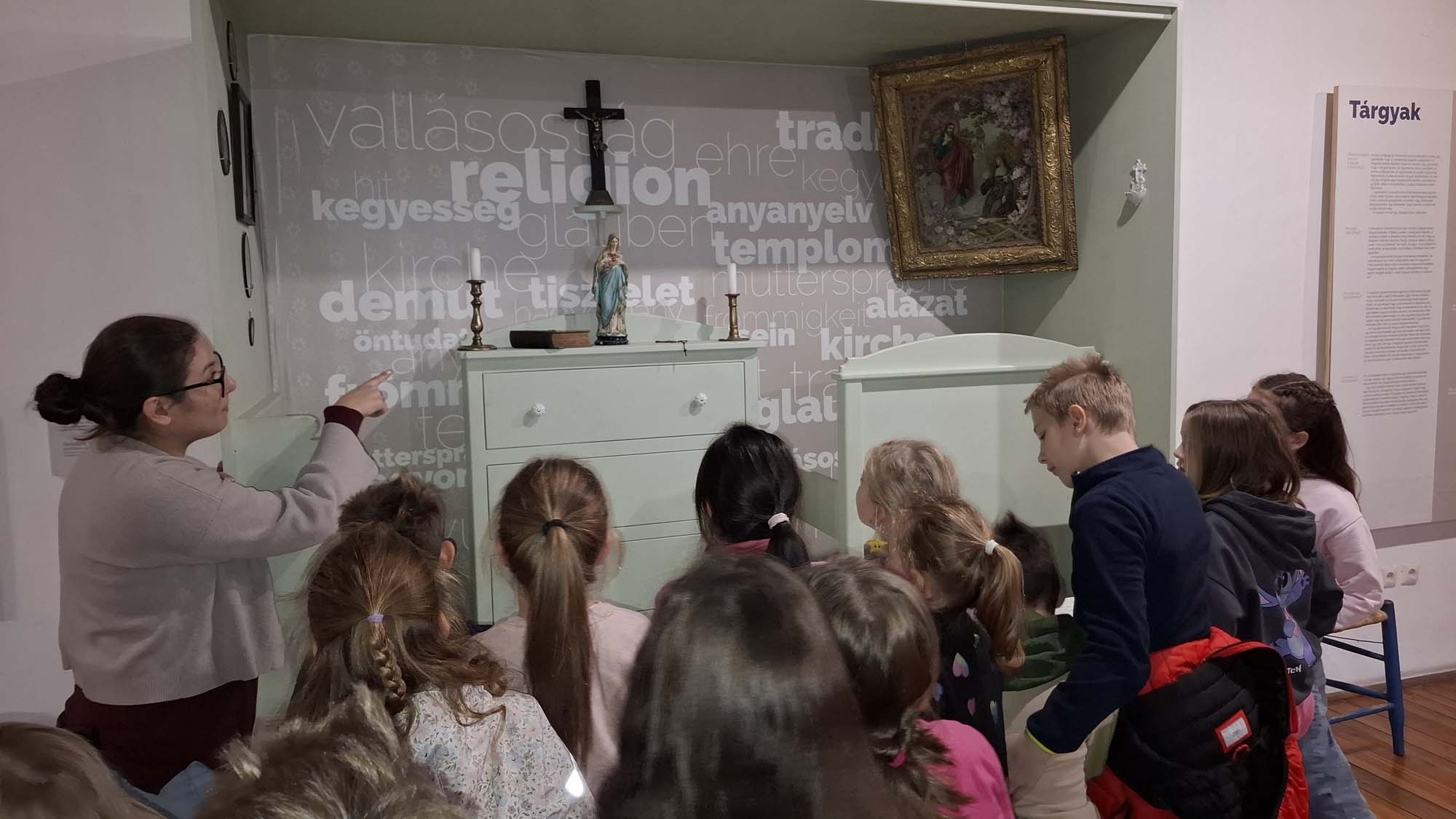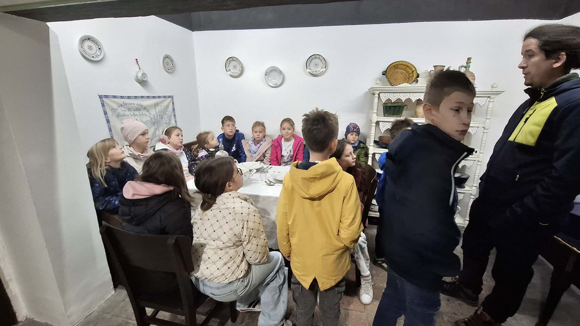 A tábor utolsó napján a tatai Német Nemzetiségi Múzeum mindenki számára feledhetetlen élményt nyújtott. A gyerekek nemcsak megcsodálhatták a gazdag gyűjteményt, hanem egy külön raktárban számos régi használati tárgyat kézbe is vehettek. Fantasztikus volt megtapasztalni, mennyi minden tartozott egykor a mindennapi élethez – valóban tanulságos és inspiráló program volt. Ebéd után a diákok városnéző kisvonattal fedezték fel Tatát, ezzel zárva a programokban és élményekben gazdag hetet.